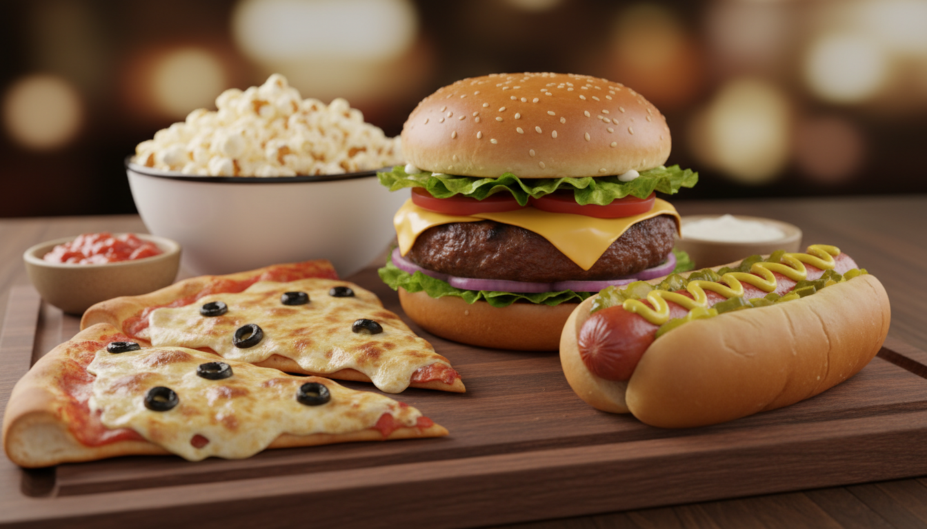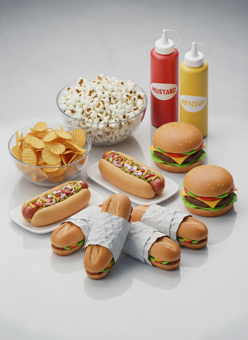 3D Render Junk Food Feast: Pizza, Burger, Hot Dog & Popcorn | Free Download